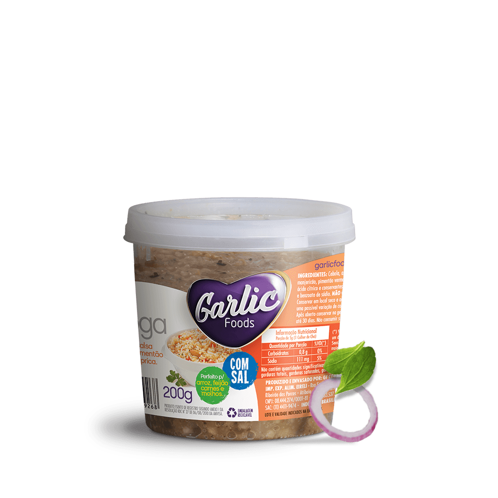 Ingredientes: Cebola, alho, sal, orégano, salsa, manjericão, pimentão vermelho, páprica, acidulante: ácido cítrico e conservantes (sorbato de potássio e benzoato de sódio)